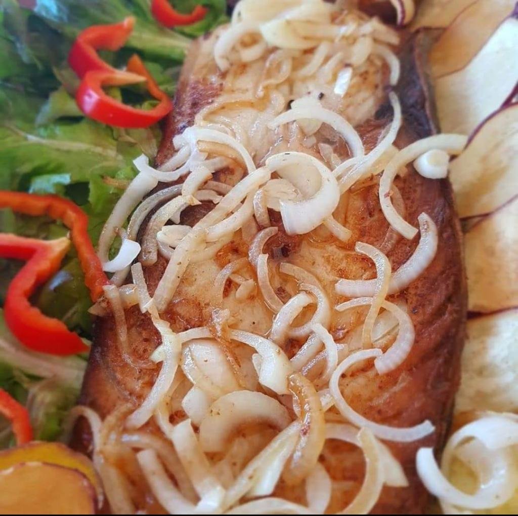![]() Filé de Sirigado ao Molho de Camarão(550g) (Arroz branco, Batata Doce Chips, Salada de legumes e Farofa) R$ 140,00 |