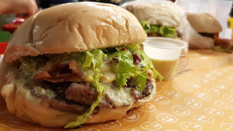 ![]() A Moda no Pão BolaPão bola, carne de hambúrguer, bacon, queijo, presunto, ovo, tomate e alface R$ 16,00 |